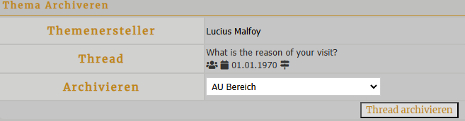 Danach gelangt ihr in ein Menü, in dem ihr via Drop Down das entsprechende Inplay Archiv auswählt und anschließend beendet ihr den Vorgang mit einem Klick auf “Thread archivieren“. Bitte achtet auch darauf das richtige Inplay Archiv bzw. entsprechende Plotarchiv auszuwählen.